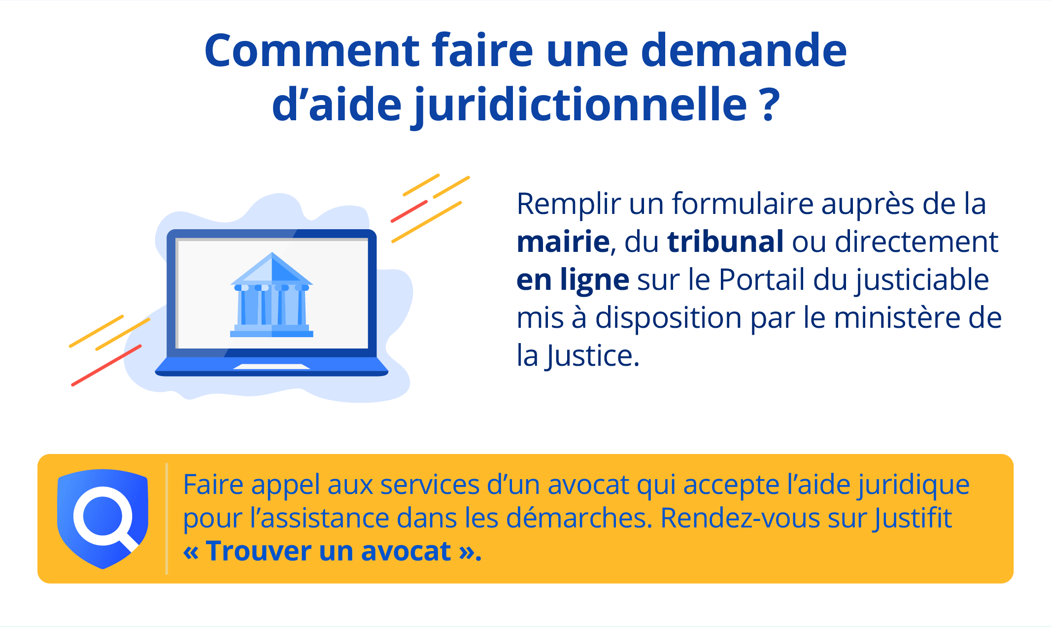 Cette infographie indique ce qu’il faut faire pour faire une demande d’aide juridictionnelle :