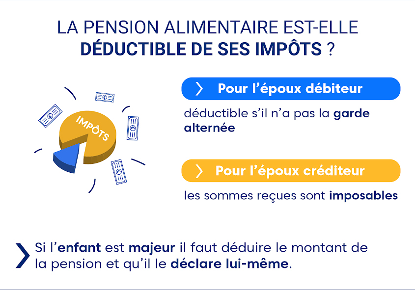 Pour le parent qui verse la pension, elle peut être déductible des impôts sous certaines conditions. Pour celui qui la reçoit, elle peut être imposable.
