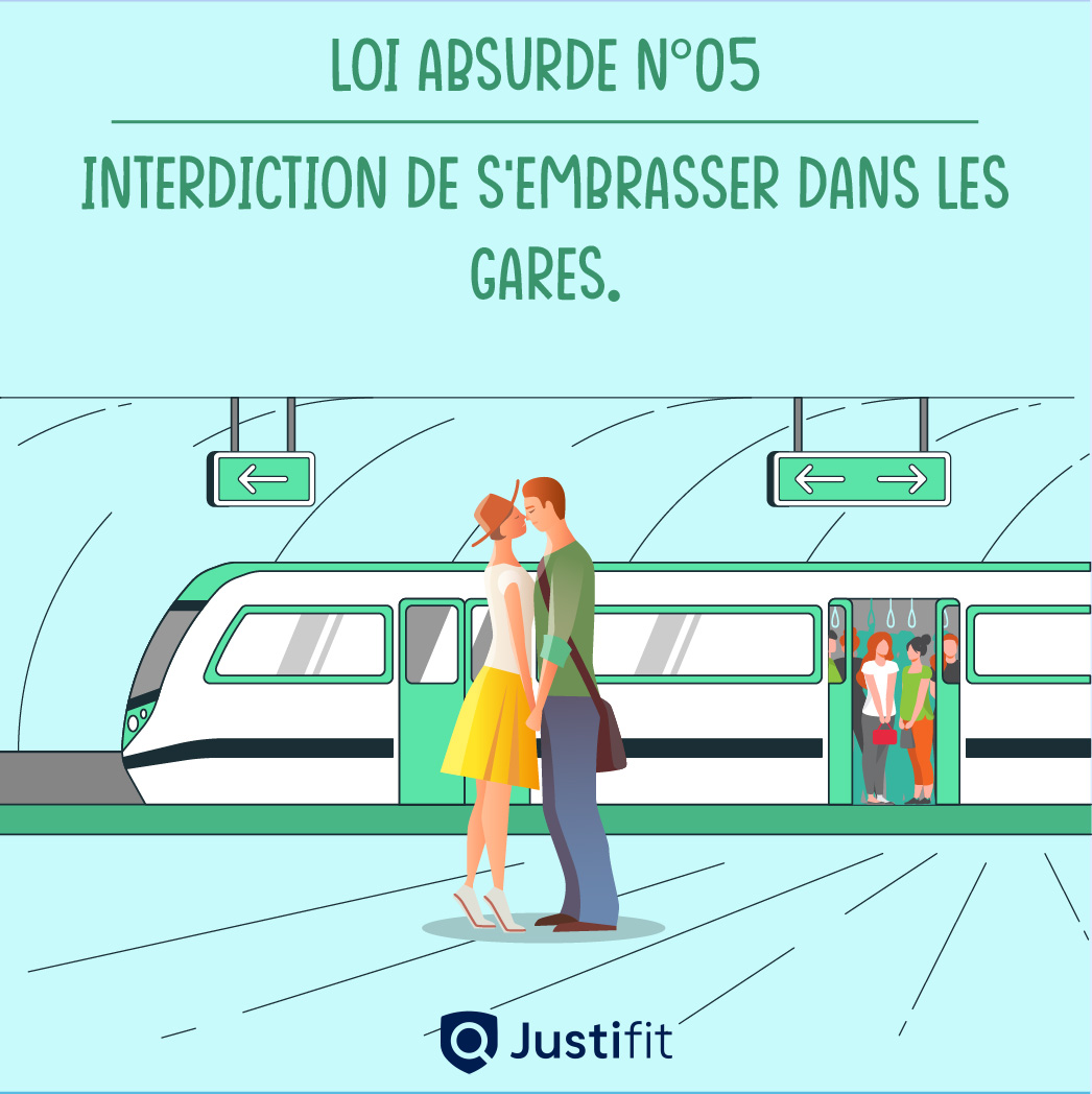 Il est interdit de s’embrasser dans les gares. Auparavant, les amoureux s’embrassaient avant de se quitter et retardaient ainsi le départ des trains, d’où la création de cette loi. De nos jours, le train ne vous attendra pas !
