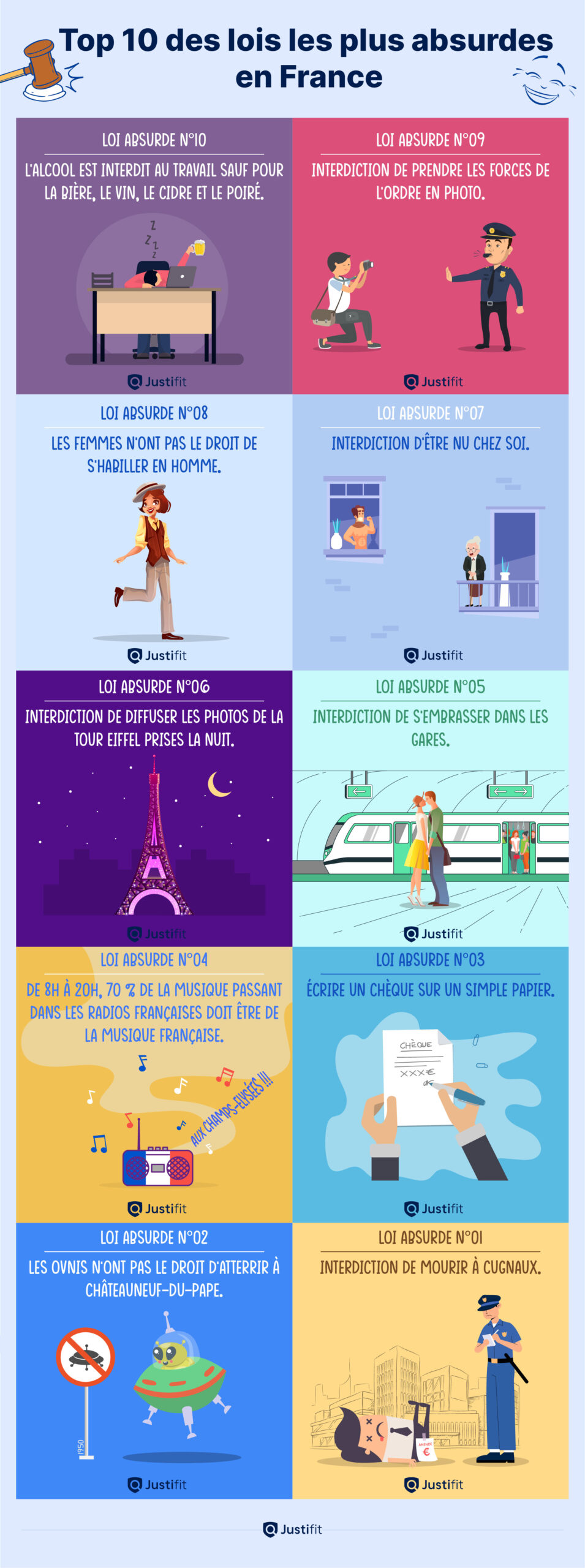 Découvrez en infographie le top 10 des lois les plus absurdes en France :
