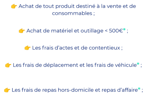 Certaines dépenses nécessitent un traitement particulier. Voici les principales :