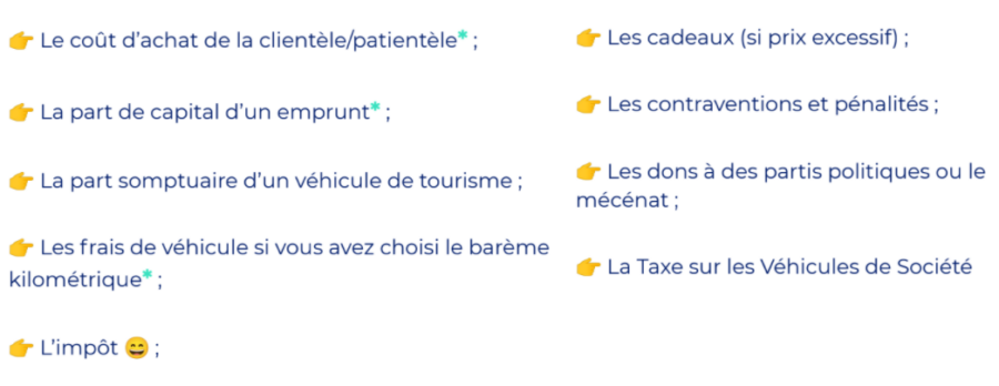 Certaines charges ne sont pas déductibles. En voici quelques-unes à garder en tête :
