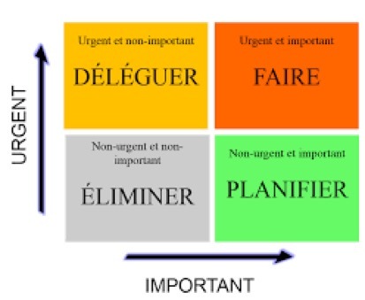 - Important urgent : il est important de savoir déléguer, faire, planifier et éliminer.
